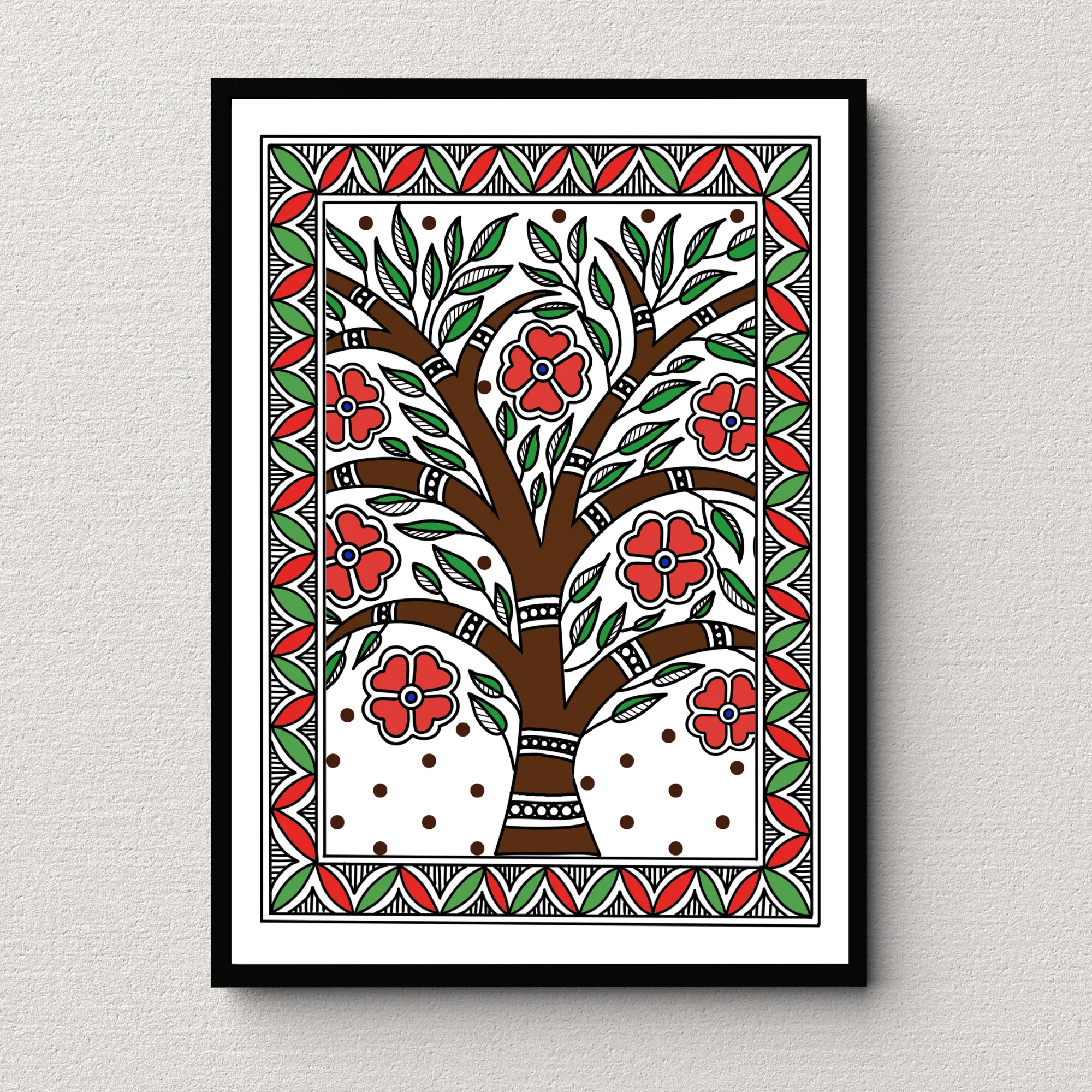 A high-resolution Madhubani tree printable art available as an instant PDF download. Print at home or at a print shop in various sizes to create meaningful Mithila-inspired wall decor.